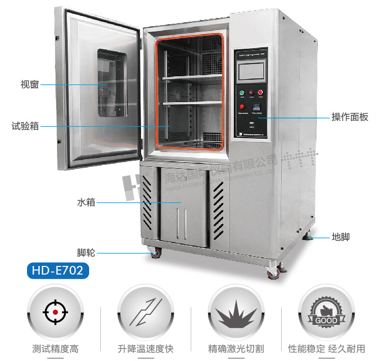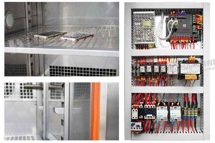 1、操作界面:液晶觸摸顯示屏 2、運轉方式:恒定運轉、程序運轉 3、程序記憶:容量120組可編程序、每個程序上限100(段) 4、設定指標:范圍溫度-100℃+300℃濕度:99.9%R.H 5、分辨率溫度:0.1℃濕度:0.1%R.H 6、輸入:PT100或T型熱電偶 7、控制方式:PID控制 8、通訊功能:RS-232接口 9、打印功能:日本橫河記錄儀(選購件) 10、附屬功能:上下限報警、自診斷、缺水、超溫報警顯示(故障原因)、定時裝置(自動開機、關機)相序保護 調節方式 1、制冷方式:單級壓縮,二元冷凍 2、制冷機:全封閉(法國泰康或德國谷輪)壓縮機 3、制冷劑:R23/R404A 4、冷凝方式:風冷 5、加熱器:不銹鋼加濕筒 6、加濕器:不銹鋼加濕筒 7、鼓風機:離心風機 8、氣流方式:寬帶式強迫氣循環(上出下進) 供水系統 1、供水方式循環供水 2、供水箱內置手拉式(30kg容量) 3、水質電阻率>500Ω.M 4、標準配置Standard features觀察窗(雙層中控鋼化玻璃)1個;測試孔¢50mm(位于左邊)1個;樣片架2層 5、向內照明燈(熒光燈)1個;供水箱1個 6、防護裝置Safety device電源用漏電保護器,防干燒裝置,水系統保護裝置,極限高低溫保護,溫度偏差 7、報警,壓縮機超壓,過載,缺水,缺相等保護。 |
