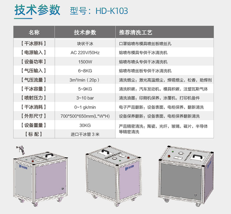 HD-K103熔噴布模具干冰清洗機(jī)適用于手機(jī),干膠加工平面,溝槽,多工面等是數(shù)控機(jī)床中發(fā)展中較快的產(chǎn)品,也是應(yīng)用較為廣泛的機(jī)床。針對(duì)模具堵塞的情況,進(jìn)行干冰高壓冷卻沖冼,加工中心適用于機(jī)械加工,模具,船舶行業(yè),汽車及零部件,航空航天等領(lǐng)域。 測試應(yīng)用: 針對(duì)模頭堵塞的情況,進(jìn)行干冰高壓沖洗。利用干冰遇到物體快速冰化的效果,急速脆化附著于模具上面的溶膠物,同時(shí)利用高壓沖洗的方式,快速清潔模頭。清洗效率十分快速,且清洗效果優(yōu)于其他的傳統(tǒng)通孔方式。 基礎(chǔ)應(yīng)用: 磨具去毛刺 去毛刺良率高,表面清潔度高,不破壞產(chǎn)品 特點(diǎn): 1. 高壓快速?zèng)_洗效率高效,沖洗效果明顯。 2.操作簡單易上手:利用干冰原理去除毛刺干凈無死角,這樣就可以保證工件美觀。 3.去毛刺效果,避免了剛性主軸去毛刺不均勻。 4.可靠性高,壽命長噪音小,轟動(dòng)小,精度高的長處。 5.配備急停開關(guān)安全裝置,保證作業(yè)安全。 6.外觀采用優(yōu)質(zhì)的不銹鋼外觀,底部配備滑輪方便移動(dòng)。 |