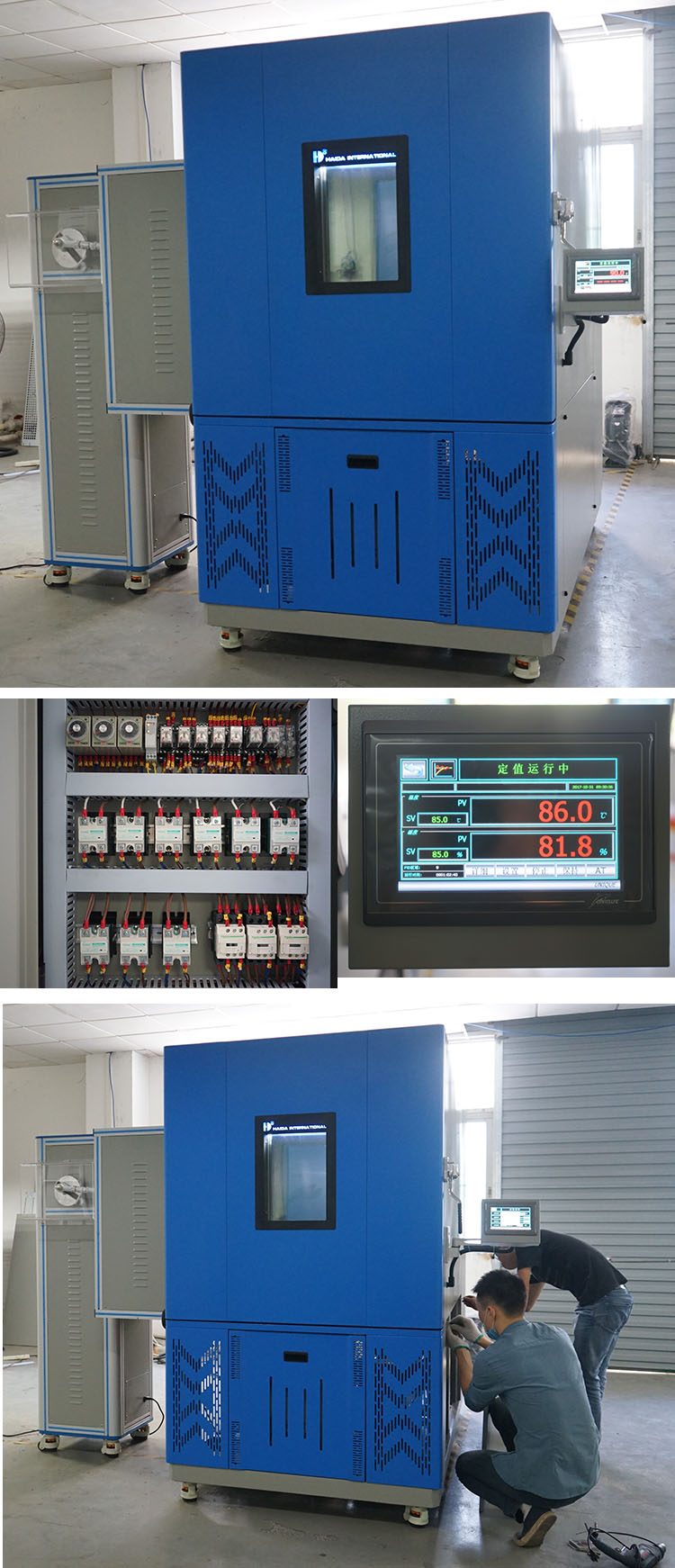 1、整個箱體采用整體結構。箱體結構 2、箱體內側采用1.0mm進口SUS304B不銹鋼板,外側采用1.0mm 冷軋鋼板噴塑,保溫材料采用超細玻璃保溫棉。 3、大門密封采用雙層硅橡膠密封材料。 4、觀察窗為多層導電膜鋼化中空玻璃,尺寸大小為350×500mm為防止低溫時玻璃結霜,特設內置式特制電壓發熱絲環繞加熱帶供電電壓36V,并設有照明燈,為觀察提供照明。 5、在箱體側面設有帶塞子的φ50mm測試孔,塞子材料為硅橡膠低發泡,能耐高低溫,兼具保溫效能。 6、在箱體工作室后側設置有一個空氣調節柜,在其間安裝 加濕器、蒸發器、電加熱器、風機、風機蝸殼等設備。 7、溫度傳感器置于出風口。 8、試驗箱內的送風方式為上送風下回風方式制冷系統 1、溫度快速變化試驗箱制冷系統及壓縮機:為了保證試驗箱降溫速率和較低溫度的要求,本試驗箱采用一套泰康全封閉壓縮機所組成的二元復疊式風冷制冷系統。復疊式制冷系統包含一個高溫制冷循環和一個低溫制冷循環,其連接容器為蒸發冷凝器,蒸發冷凝器是也到能量傳遞的作用,將工作室內熱能通過兩級制冷系統傳遞出去,實現隆溫的目的。制冷系統的設計應用能量調節技術,一種行之有效的處理方式既能保證在制冷機組正常運行的情況下又能對制冷系統的能耗及制冷量進行有效的調節,使制冷系統的運行費用和故障率下降到較為經濟的狀態。 2、制冷劑:R404(高溫循環)、R23(低溫循環) 3、輔助件:膨脹閥(丹麥丹佛斯),電磁閥(意大利CASTEL); 4、過濾器(美國愛高);油離器(臺灣冠壓)等制冷配件均采用進口件。 | ||