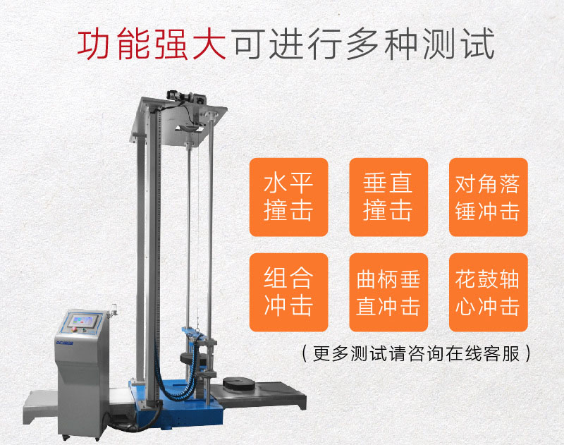 本機用于沖擊試驗,適用于前叉落錘沖擊,前叉車架組合落錘沖擊,腳踏板水平、垂直、對角落錘沖擊、車把組合沖擊,曲柄垂直沖擊、花鼓軸心沖擊、滑板車前輪抗沖擊、滑板車前叉沖擊等試驗功能 設(shè)計標準:GB3565-2005(參考定制) |