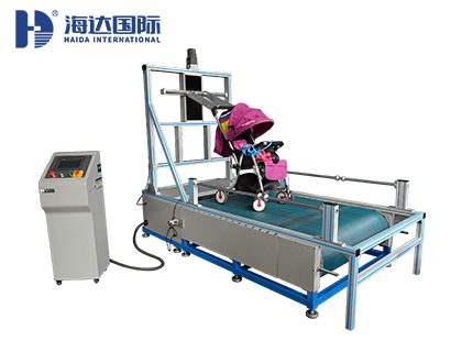 測試方法為:置模型嬰兒于車臺中,將車臺固定于測試臺上,調整輸送帶速度1.4±0.1m/sec(5kw/h±3.6 kw/h)。持續測試64小時后,目視車臺有無損壞。達設定次數能自動停止操作。本機備有電眼安全裝置,可防止因把手及橡膠束環斷裂致使嬰兒車失控損壞測試機。本機適用于手推式嬰兒車模擬路況運動時底輪及車體之動態耐用性測試。 滿足標準:AS/NZS2088:2000 ASTM-F833及CNS 6263-11,BSL-1996、EN1888:2003 |